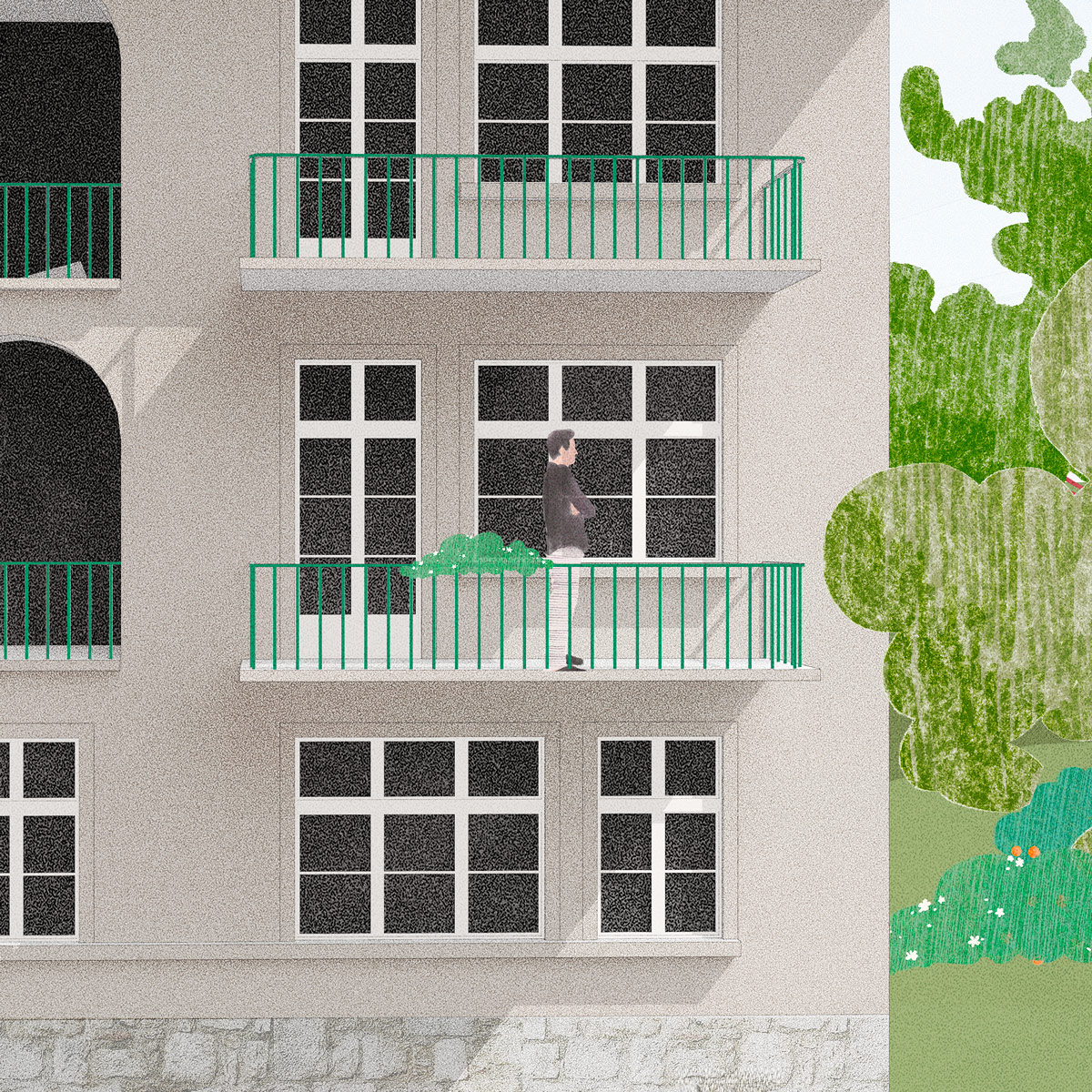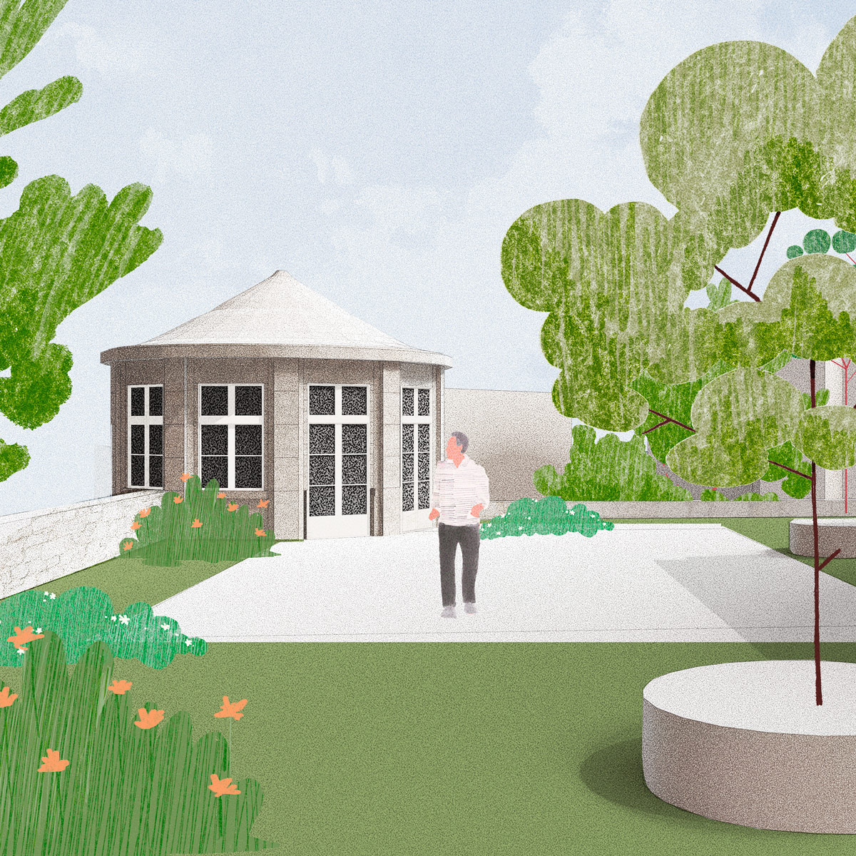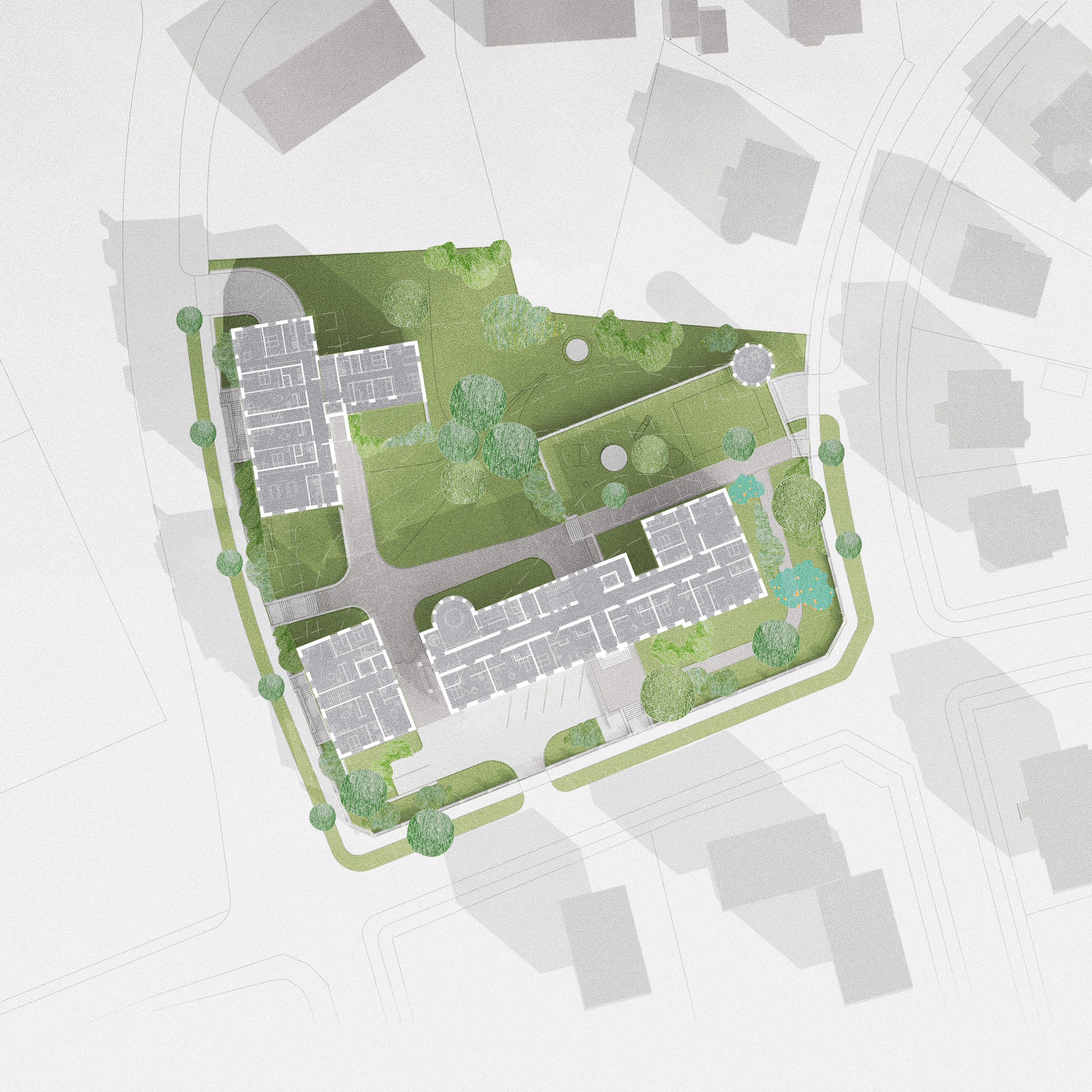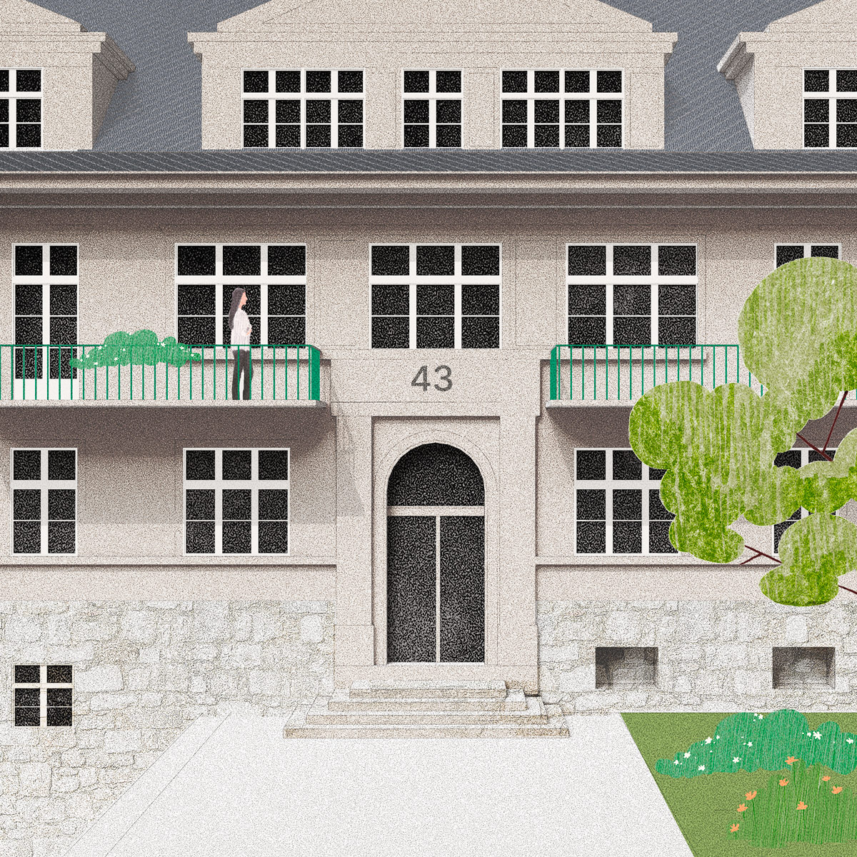 Návrh citlivě reaguje na historickou a urbanistickou hodnotu místa. Budovu bývalé porodnice přetváří na kvalitní městský bytový dům s promyšlenými dispozicemi, komunitními prostory a maximálním komfortem pro obyvatele. Nová zástavba navazuje na historické měřítko a atmosféru lokality, zároveň však přináší do vnitrobloku současný architektonický výraz. Území je prostupné, s jasným rozdělením na soukromé a poloveřejné plochy. Zachování vzrostlé zeleně a doplnění o historizující altán, dětské hřiště či ohniště podporuje sousedské vztahy a vytváří obytné prostředí s vysokou kvalitou života.